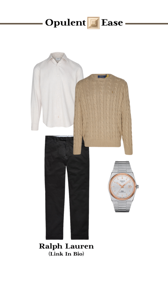 1 Pair Of Trousers, 4 Outfits / Clothing / By OpulentEase Polo Ralph Lauren Chino Slim Fit Black Polo Ralph Lauren Quarter Zip Sweater Cream Gant T-Shirt Regular Fit White Seiko 5 Sports SNXS Beige Chinos Watch Polo Ralph Lauren Chino Slim Fit Black Carthartt WIP Long Sleeve Shirt Grey Carhartt WIP T-Shirt White Seiko Mens Presage Fume Style 60s Road Trip GMT Watch Polo Ralph Lauren Chino Slim Fit Black Polo Ralph Lauren Cable Knit Sweater Camel Joop Shirt Slim Fit Hanson Beige Tissot Mens PRX Powermatic Rose Gold Watch Polo Ralph Lauren Chino Slim Fit Black Dsquared2 Sweatshirt Grey Dsquared2 T-Shirt Black Tissot PR 100 Silver & Black Watch